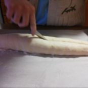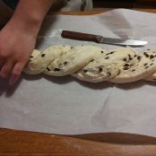 Intrecciate le due metà fra di loro, avendo cura di mettere il lato del ripieno verso l'alto.