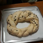 Mettete la treccia su una teglia con della carta forno, avendo curadi disporla a forma di cerchio. Lasciate lievitare per un'altra ora.