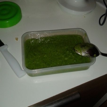 Versare tutti gli ingredienti nel frullatore fino ad ottenere un pesto dalla consistenza che più vi piace.