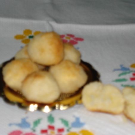 Montare a neve gli albumi.Aggiungere i tuorli, il cocco e lo zucchero e mescolare.Dopo di ciò fare delle palline e metterle in una teglia imburrata.Infornare a 180° per 20-30 minuti!