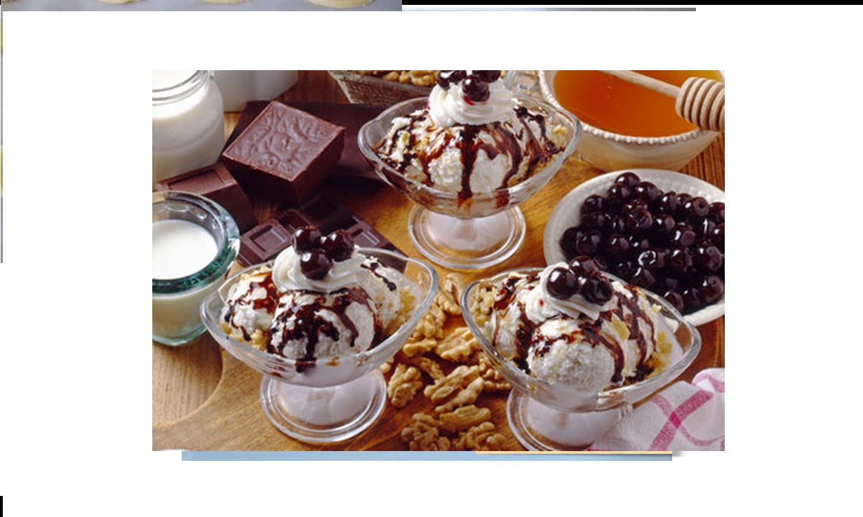 5) Guarnite, al momento di servire in tavola, le coppette di gelato con il cioccolato caldo. Decorate con le amarene sciroppate gia scolate e con ciuffi di panna montata.