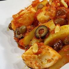 Quando il baccalà sarà pronto per essere cucinato, soffriggere una cipolla tagliata ad anellini, aggiungere acqua, qualche pomodorino, sedano, qualche patata a pezzi non troppo piccoli e il baccalà: cuocere almeno un'oretta