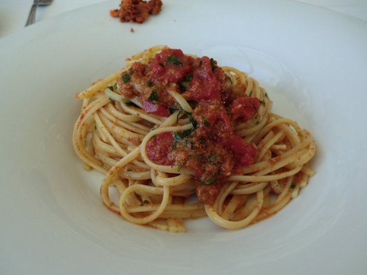 Cuocete gli spaghetti, scolateli al dente, conditeli con il ”sugo”, aggiungete abbondante pepe, le rimanenti uova di riccio, del prezzemolo tritato e servite immediatamente, gli spaghetti ai ricci di mare sono pronti.