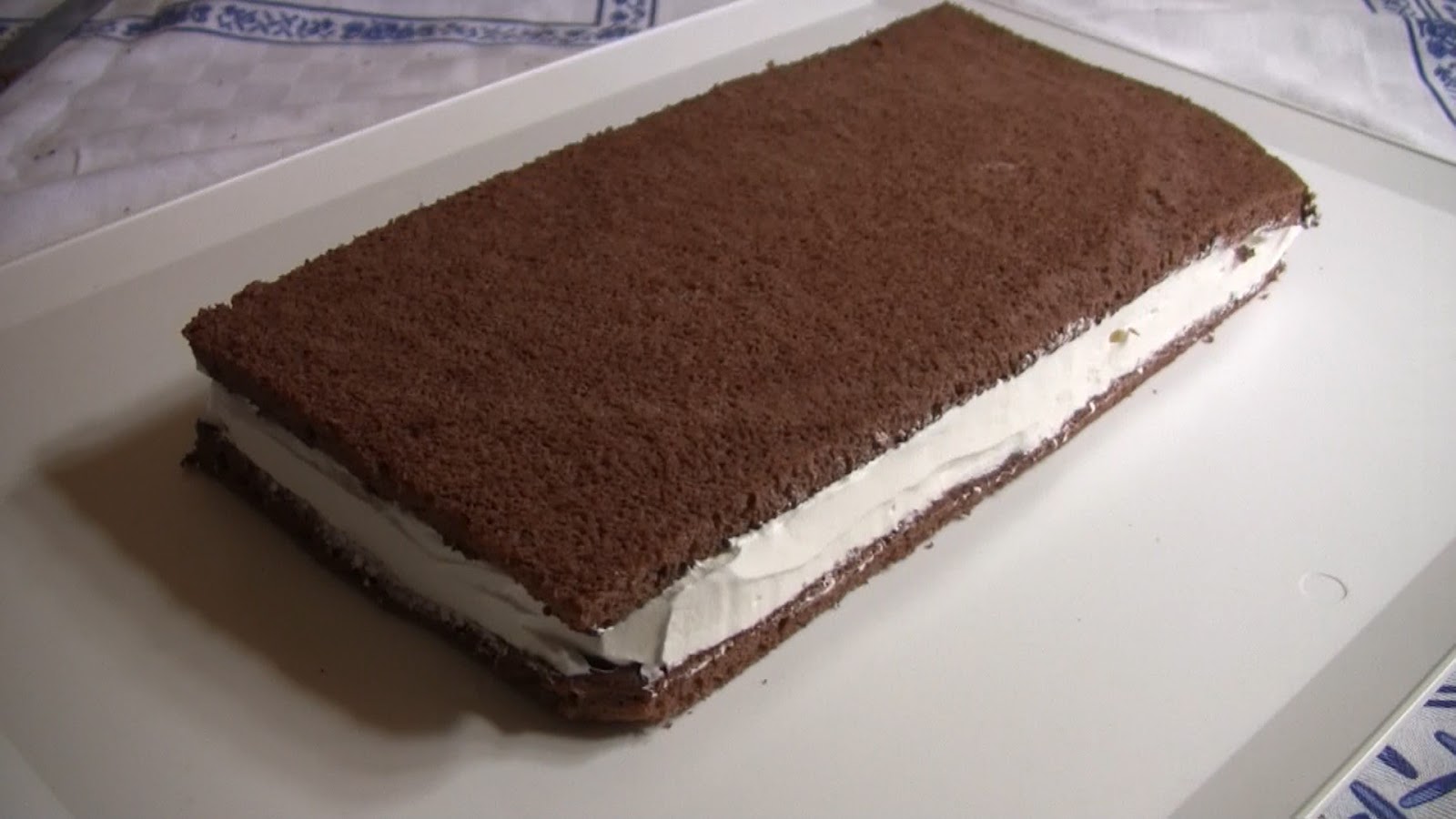 Dividere a metà la base di torta al cacao e farcirne una parte spalmando un bello strato di crema al mascarpone.