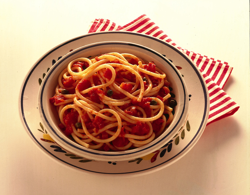 Cuocere i bucatini molto al dente, stendere il sugo in una pirofila, quindi continuare con uno strato di bucatini, uno strato di pangrattato, una spolverata di pecorino, una di parmigiano e di nuovo sugo. Ripetere l'operazione, a partire dai bucatini e finendo con il sugo.