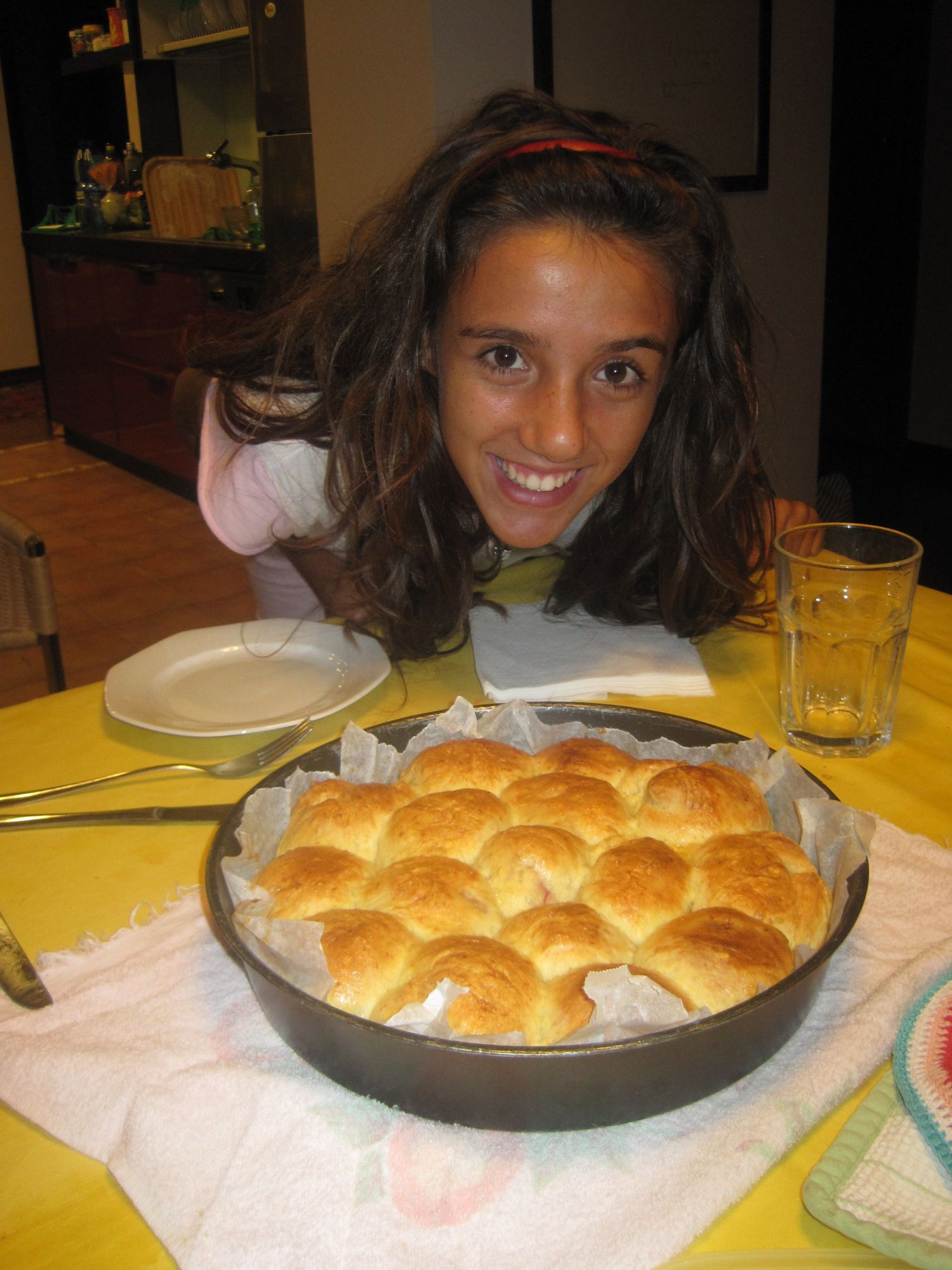 Sigillare bene le palline di danubio e poggiarle in uno stampo imburrato avendo cura di distanziarle bene le une dalle altre.
