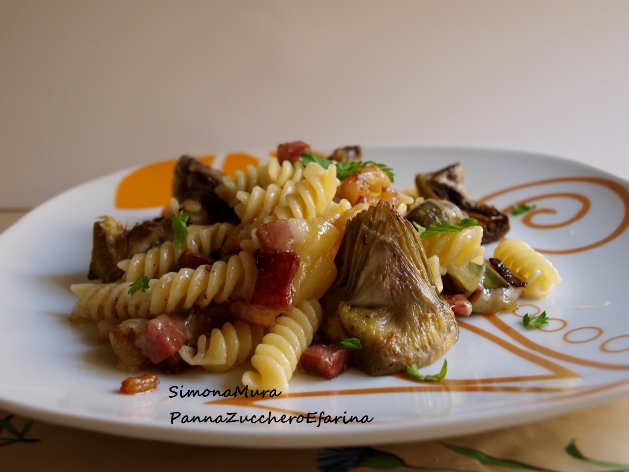 Fusilli con carciofi, gamberetti, cotto ed Edamer