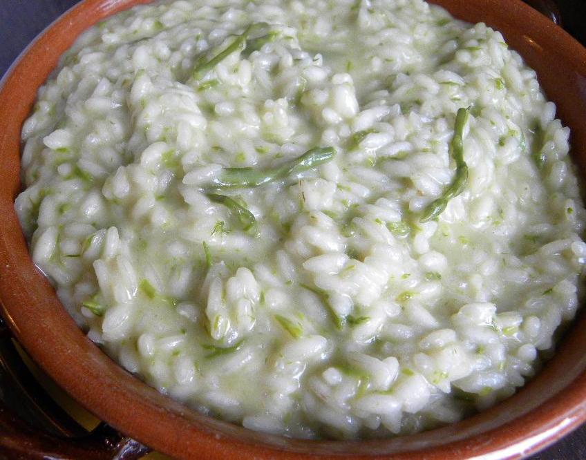 Soffriggere la cipolla nell'olio, unire i bruscandoli tagliati a pezzettini e far insaporire. Salare, pepare e cuocere per una decina di minuti. Tagliare l'asiago a cubetti e tener da parte. Versare il riso, mescolare, sfumare con il vino e portare a cottura aggiungendo di tanto in tanto il brodo. Mantecare con l'asiago e parmigiano grattugiato. Salare, pepare e servire.