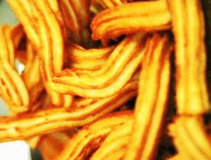 Portare l'acqua a bollore con lo zucchero, il sale e il burro e l'aroma all'arancia. Una volta che zucchero e burro saranno perfettamente sciolti aggiungere la farina con la scorza d'arancia grattugiata. Rimestare con forza per evitare la formazione di grumi fino a che la pasta non abbia raggiunto una certa consistenza, quindi togliere dal fuoco e lasciare sfreddare. A questo punto aggiungere le uova una per volta e continuando a mescolare energicamente. Quando le uova saranno state ben assorbite versare l'impasto in una sac-a-poche con beccuccio a stella e versare piccole strisce di impasto direttamente sull'olio bollente. Friggere per circa 3 minuti per parte. Scolare su carta assorbente e cospargere subito con lo zucchero semolato.