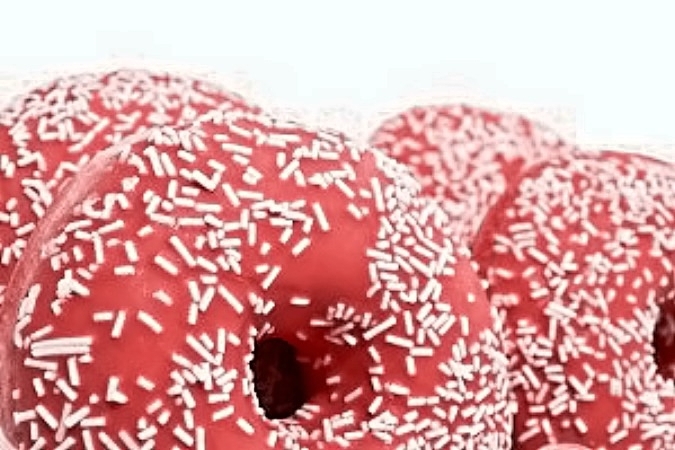 Si possono servire semplicemente cosparsi di zucchero semolato appena cotti altrimenti preparare la glassa montare il burro con lo zucchero a velo e il colorante, quindi diluire mano a mano con acqua fino ad ottenere un composto fluido. Versate la glassa sui donuts tiepidi e cospargeteli poi con codette di zucchero bianco o colorato.