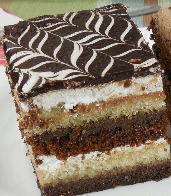 Una torta a strati con crema al cioccolato fondente ed al cioccolato bianco: ottima, conquista i bambini grazie alla sua crema golosissima. Gli strati composti da biscotti secchi bagnati nel latte la rendono morbida e delicata.