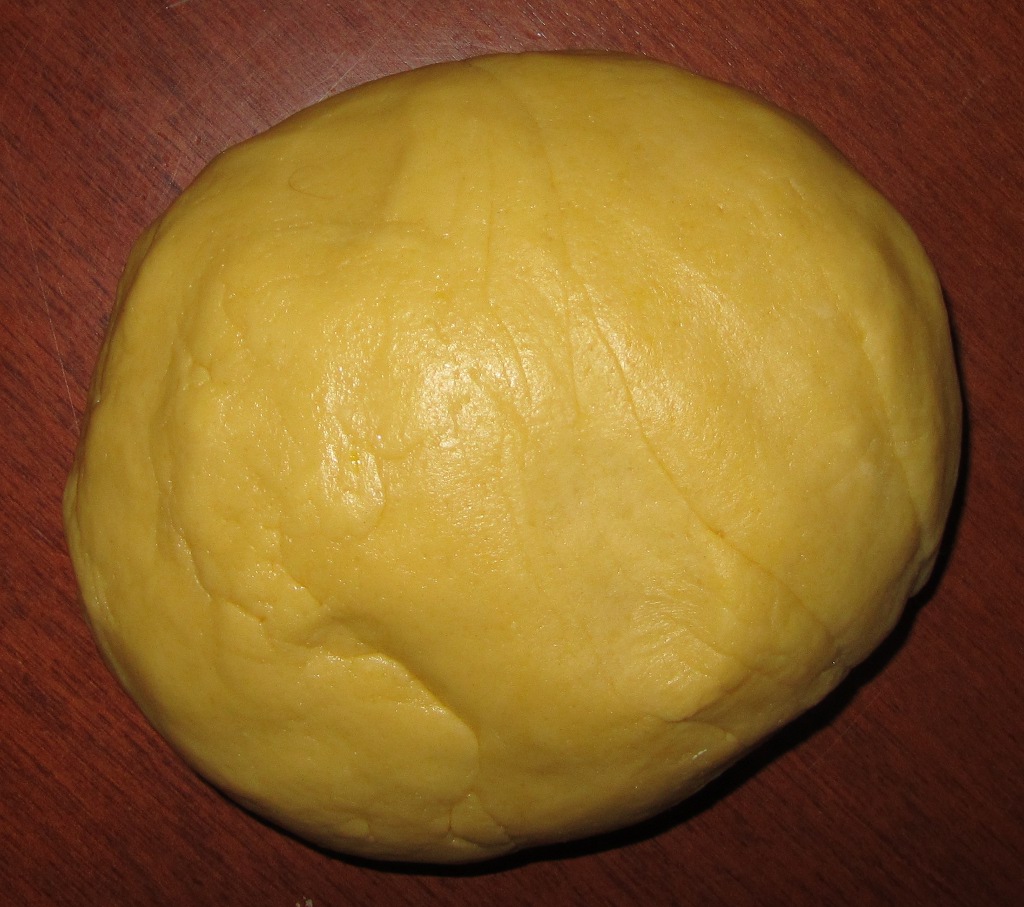 Formare una palla con l'impasto e mettere in un piatto ricoperto di pellicola da cucina. Lasciare riposare in frigo almeno un ora