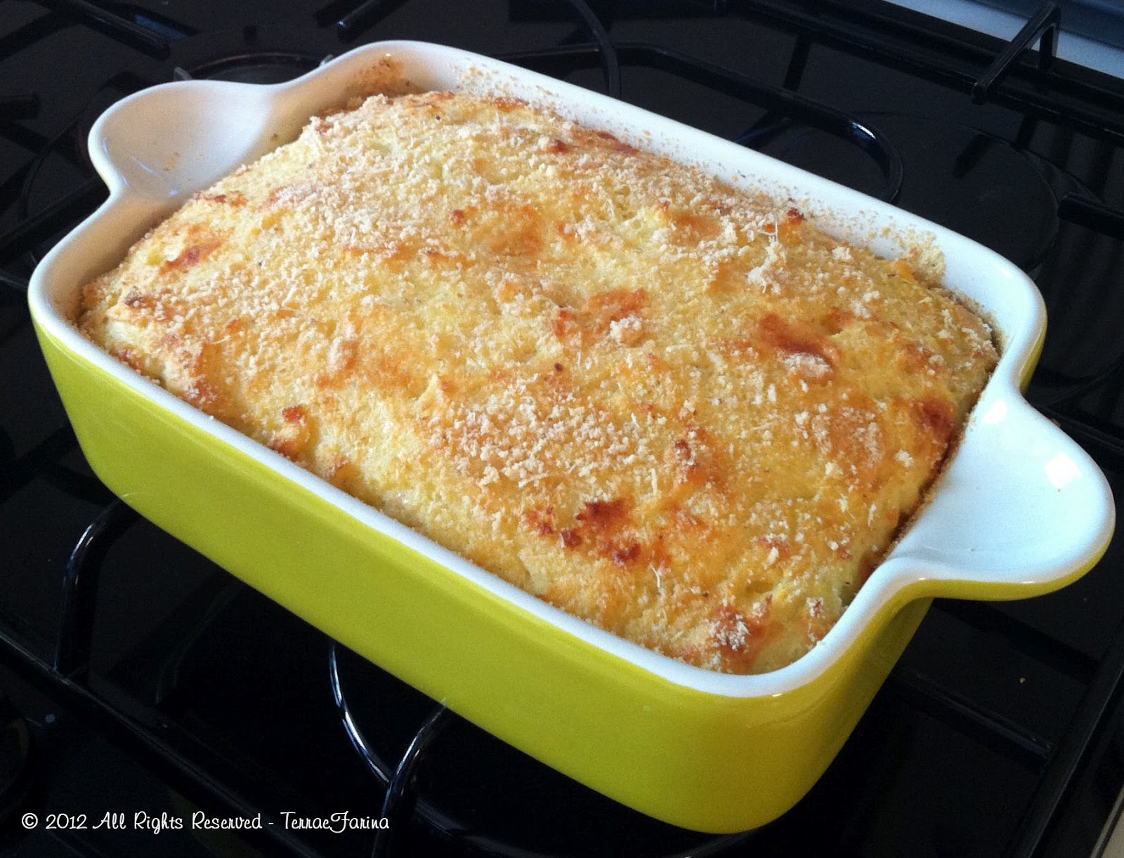 Spolverizzate di pangrattato, cospargete con fiocchetti del restante burro e passate in forno caldo fino che il gateau si dorerà in superficie.