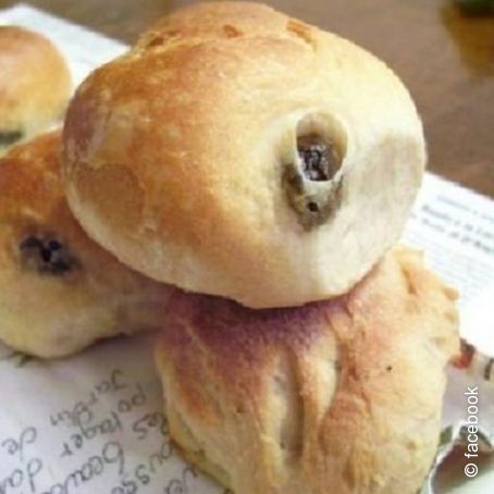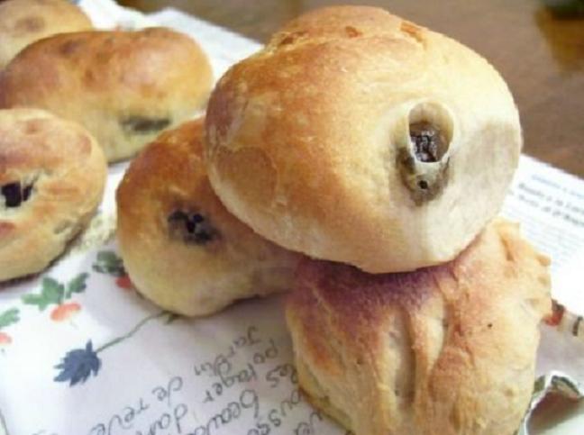 Unire alla pasta le olive a pezzi e la salvia tritata. Lavorarla ancora, poi tagliarla a pezzi per creare dei dischi alti un cm. e larghi quanto un bicchiere.