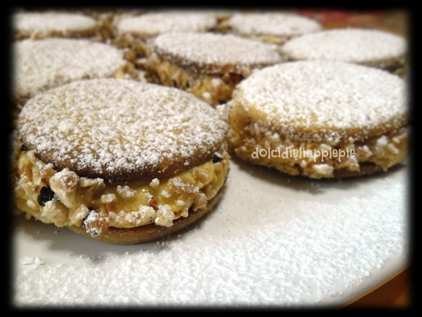 Riempire i biscotti con la crema e passare i bordi laterali nella granella di nocciole
