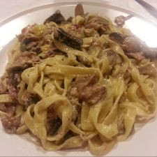 Pulite bene i funghi freschi, tritateli grossolanamente e poi metteteli in padella con un po' d'olio, sale e pepe. A fine cottura aggiungete anche il timo e il prezzemolo tritati, poi preparate una pentola per bollire l'acqua necessaria a cuocere le tagliatelle. Quando la pasta sarà al dente, scolatela, mettendo prima nella padella dei funghi un po' d'acqua di cottura, e poi unitela al sugo. Sbattete l'uovo con il grana grattugiato, aggiungeteli in padella e mescolate tutto per bene.