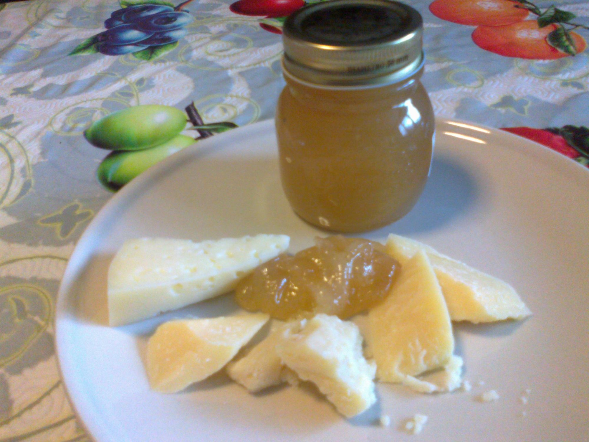 Sbucciare e tagliare a tocchetti le pere e la mela, porre in una pentola, aggiungere lo zucchero e portare a bollore. Togliere dal fuoco e lasciare raffreddare. Coprire con la pellicola trasparente e lasciare marinare a temperatura ambiente per 12 ore (1 notte). Trascorso il tempo aggiungere il succo di limone e porre sul fuoco per 15-20 minuti. Frullare con il mini pimmer ad immersione, rimettere ancora sul fuoco e continuare la cottura fino al raggiungimento della giusta consistenza (circa 20-25 minuti). Invasare, chiudere ermeticamente, lasciar raffreddare capovolti e farli bollire per 20-25 minuti. Conservare in luogo buio ed asciutto.