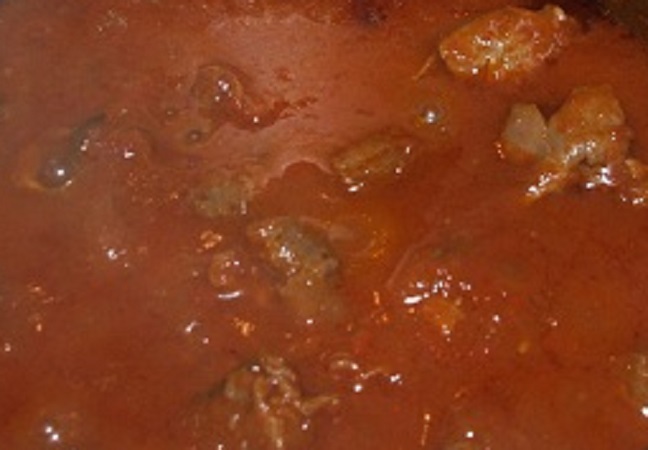 Dopo 2 minuti, aggiungete i pomodori pelati e le foglie di salvia, fate cuocere a fuoco moderato per qualche minuto.