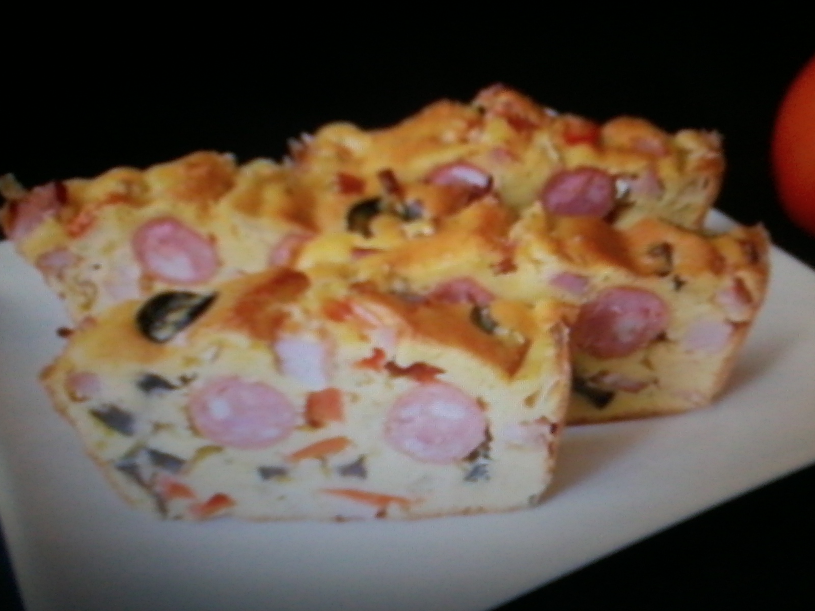 - 5 uova,3 cucchia yogurt,panceta o salsicce ,mita peperone gialo mita rosso,100 gr olive,7 -8 cuchiai farina,parmegiano gratugiato,lievito in polvere,marar,sale,pepe,aneto