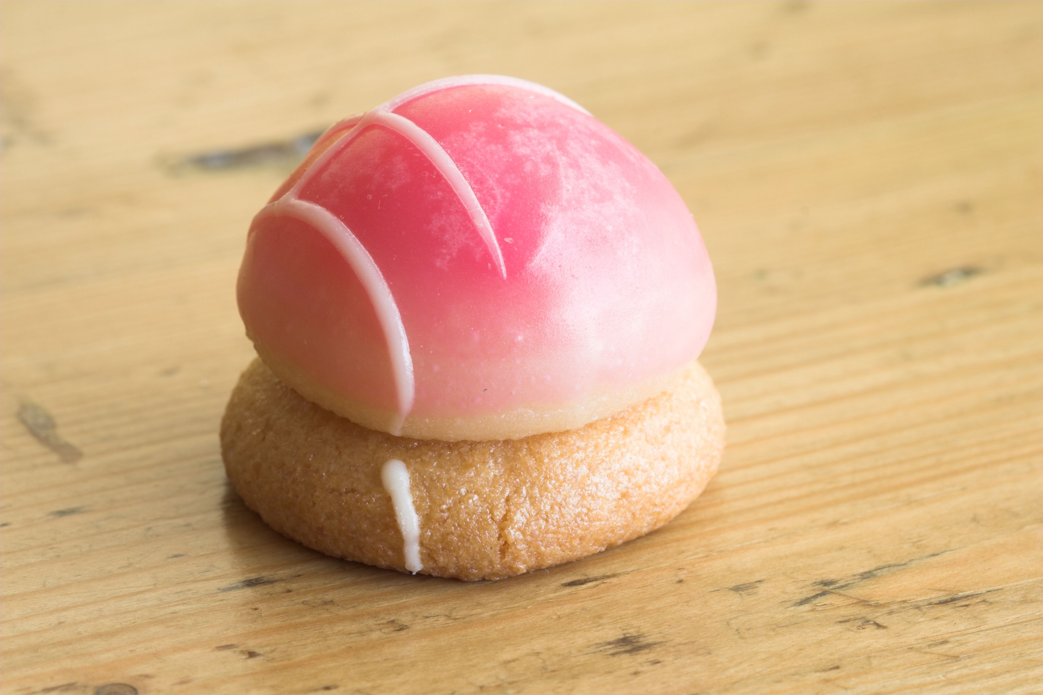 Preparare la glassa, versando sullo zucchero a velo l'acqua calda e mescolando vigorosamente, unire l'alchermes e continuare a mescolare fino a che la glassa non appaia perfettamente liscia e omogenea. A questo punto ricoprire la parte superiore dei funghetti con la glassa e lasciar rapprendere.