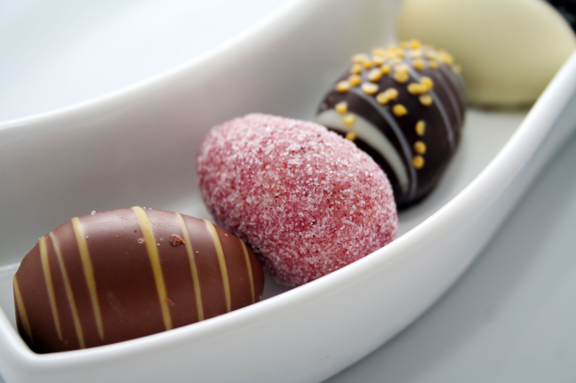 Fate scaldare la panna e quando inizia a bollire spegnete il fuoco. Mettete in una ciotola il cioccolato bianco a cubetti e versate la panna calda, stemperando con una frusta manuale per sciogliere il cioccolato. Ripetete la stessa operazione con il cioccolato fondente mettendolo in un'altra ciotola.