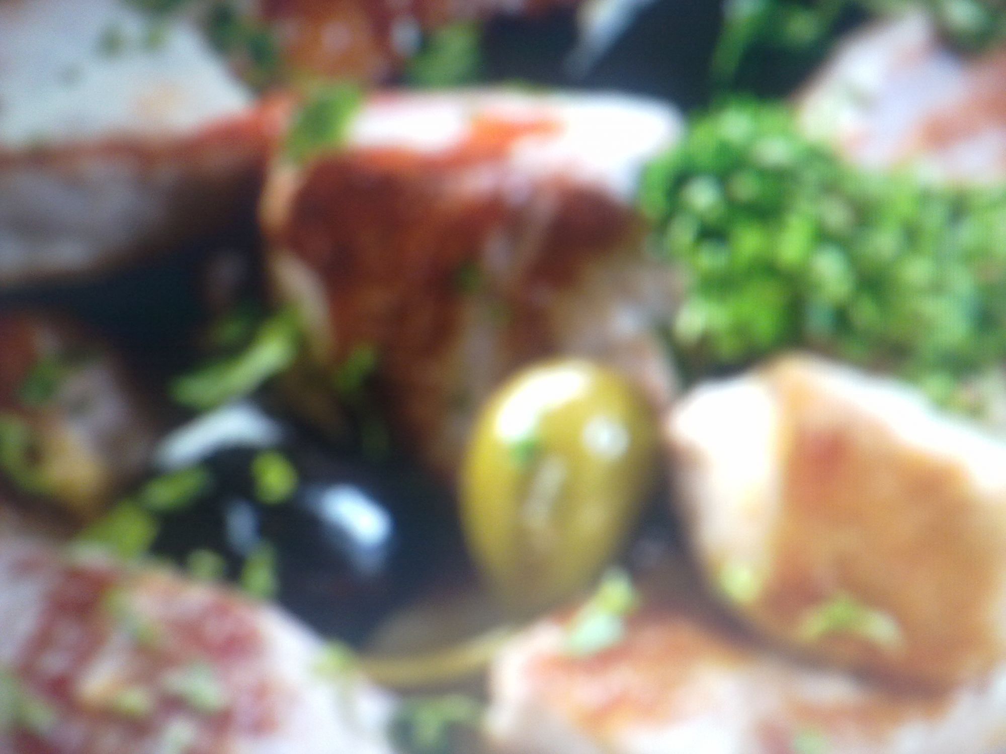 Trita l’aglio sbucciato e schiacciato con le foglie di prezzemolo e i capperi.