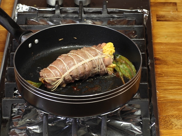 Arrotolate con cura la fetta di vitello e legatela con dello spago da cucina.