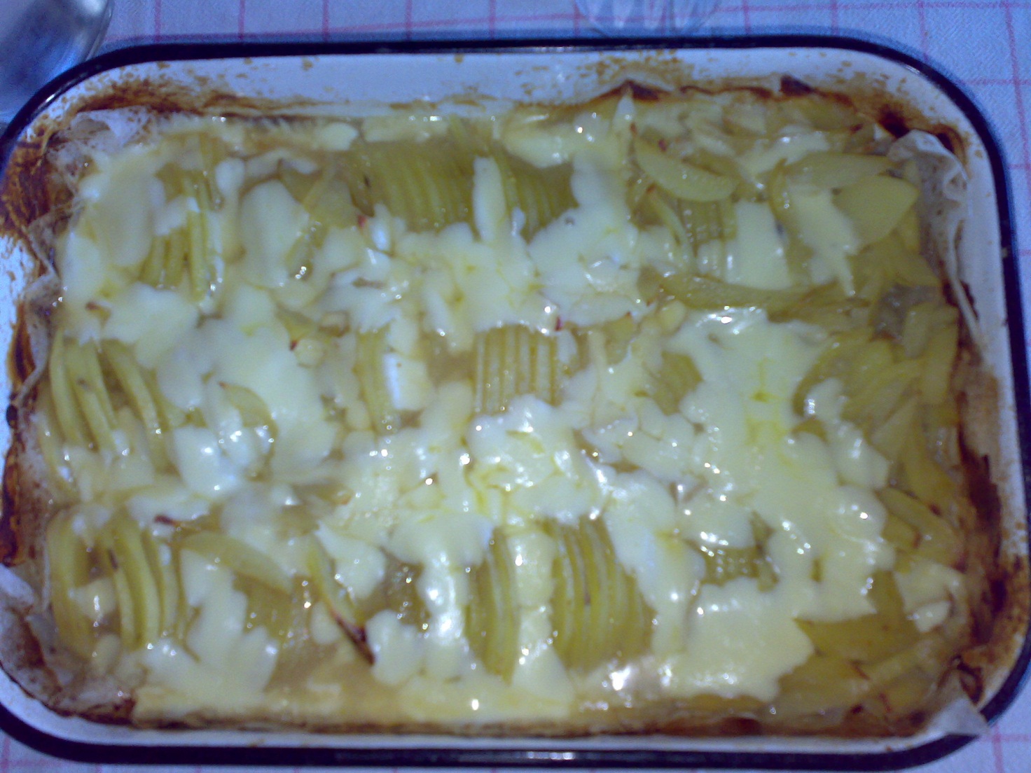 Preparare il brodo coi dadi e versare sulle patate fino a ricoprire tutta la teglia.