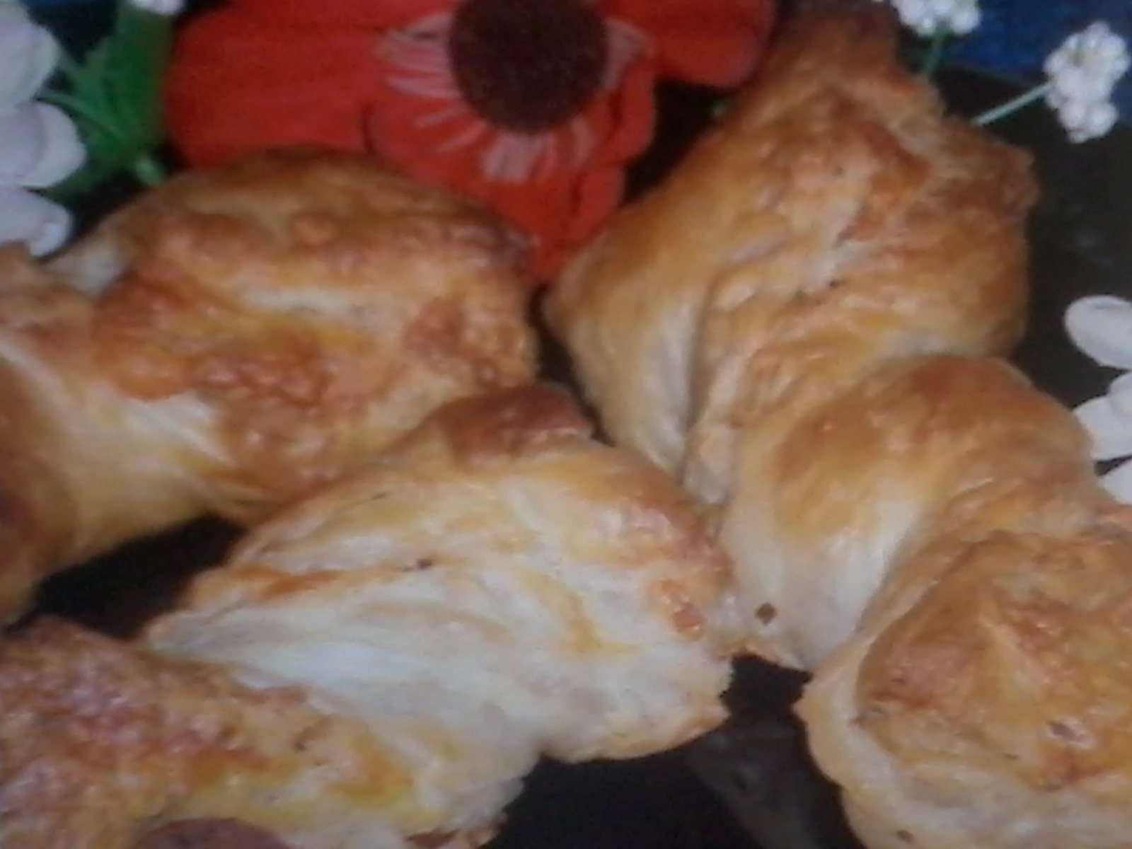 Stentete una pasta sfolia ,sopra la mita de la pasta si mete formaggio gratugiato,poi oregano,salsicia,la mita rimasta si copre cuela che aviamo meso li ingredienti ,si fano cuadrati ,i si posono spalmare con uovo sbatuto,si lasa per 5 min 225,poi si basa a 180 per 20 min pi o meno