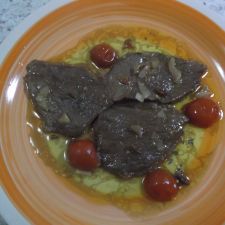 In una padella dal fondo largo sciogliete una grossa noce di burro e mettete a rosolare le fettine di carne, prima da un lato, poi dall'altro. Sfumate con del vino bianco, salate un pochino e servite.