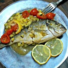 Se l’orata al forno con le verdure che saranno diventate croccanti durante la cottura.