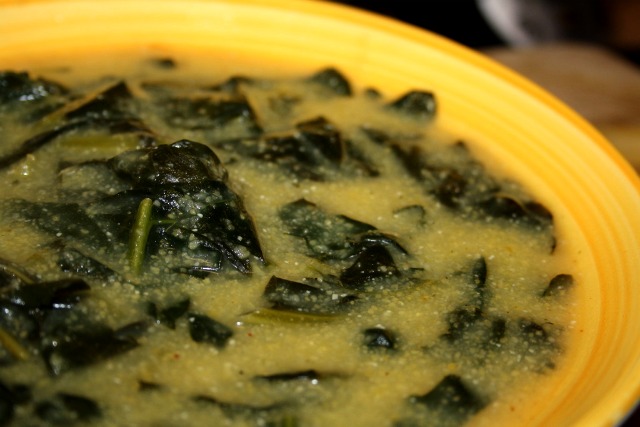 Versare l’acqua della cottura dei fagioli nel tegame e lentamente unire la farina gialla facendo attenzione che non si formino grumi. Mescolare frequentemente per 40 minuti a fuoco lento. Se la consistenza della farinata risulta troppo densa, aggiungere acqua calda durante la cottura.