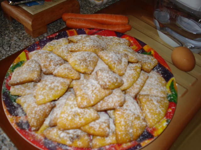 Lavorare il burro con lo zucchero, aggiungere l'uovo, le carote grattugiate, la farina e il lievito e impastare.Far riposare la pasta in frigo per 30 minuti.Dopo di ciò stenderla con il mattarello e ricavare tanti quadrati 10x10.Mettere al centro un pò di nutella o marmellata e chiudere a triangolo.Mescolare il tuorlo con il latte e spennellare i triangolini.Infornare a 200° per 15 minuti.Spolverizzare con lo zucchero a velo!
