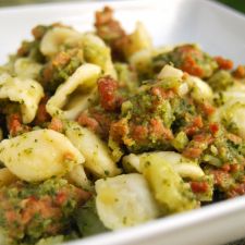 Nel frattempo fate cuocere la pasta, scolatela ed unite le cimette di broccolo scolate ed il sugo alla panna.