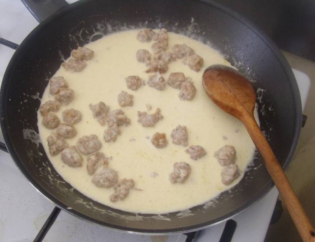 A fine cottura aggiungere la panna e lasciar cuocere per altri 5 minuti.