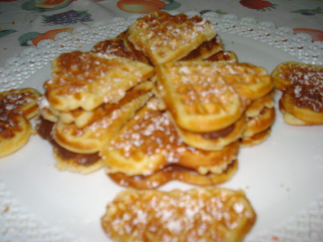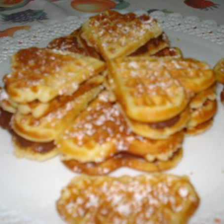 Lavorare lo zucchero con le uova.Setacciare la farina, il lievito.Aggiungere il burro fuso, la scorza grattugiata del limone, lo yogurt e un cucchiaino di rum.Mescolare il tutto e versare un cucchiaio di composto nella macchina per wafer.Far cuocere per circa 2 minuti, dopo di ciò farcirli con la nutella e spolverizzare di zucchero a velo!