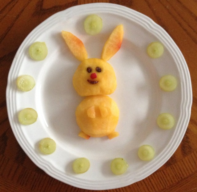 - DISEGNI CON LA FRUTTA PER BAMBNI. Altra possibilità che riscuoterà altrettanto successo è creare delle piccole sculture di frutta, a forma di coniglietto o quel che preferite: l’animaletto va posto al centro, e per far mangiare più frutta ai bambini il segreto è creare anche uno sfondo pieno (che ovviamente va mangiato tutto!).