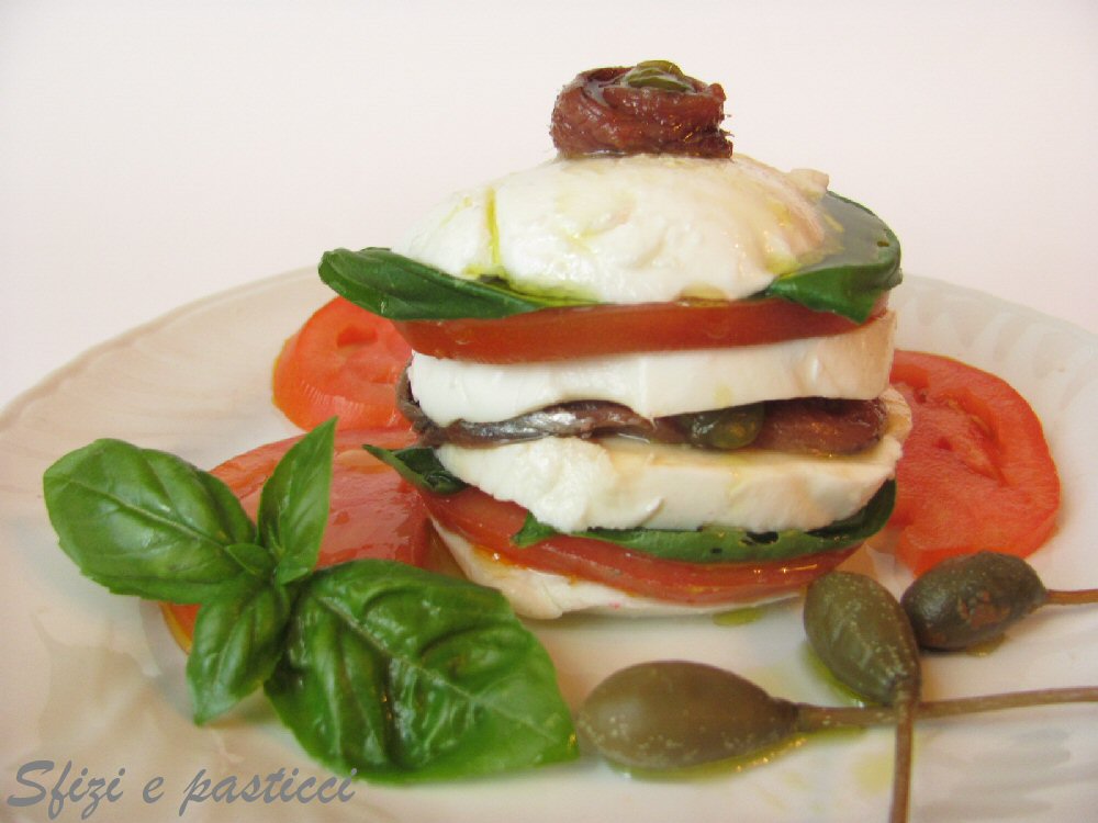 Irrorate con un filo d'olio e spezzettate le foglie di basilico con le mani. Mescolate gli ingredienti e lasciate insaporire i pomodorini. Intanto preparate la mozzarella: fatela scolare brevemente in un colino a maglie strette, strizzandola con delicatezza per far perdere il siero in eccesso. Poi con un coltellino, eliminate la calotta creando un apertura di circa 4 cm di diametro.