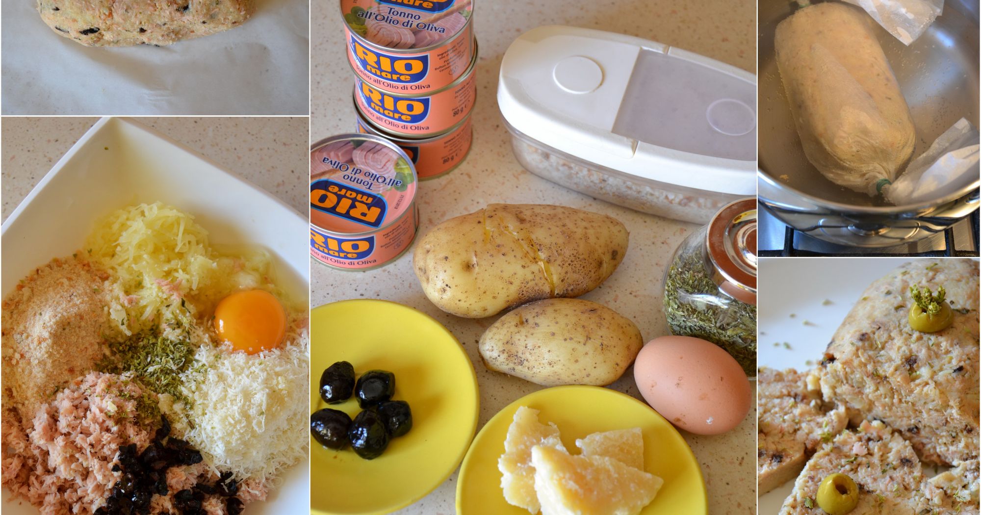 Chiudete il salame di tonno in un foglio di alluminio, sigillate bene il composto sia alle estremità che per tutta la sua lunghezza. Cuocete il polpettone di tonno in una casseruola capiente con abbondante acqua per circa 1 ora.
