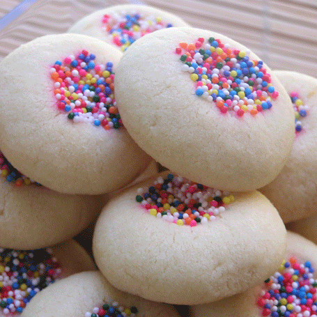 Poi fare delle palline, shiacciare in centro con un dito appoggiare su una teglia a una distanza di 1 cm fra di loro, decorare con le granelle, palline o zucchero colorato, portare in forno preriscaldato a 175° per circa 25 minuti o fino a farli diventare dorati sotto.