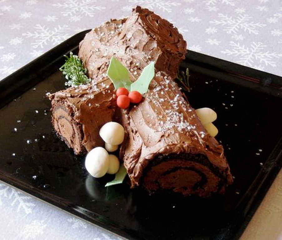 Aggiungere un cucchiaio di cacao alla panna e ricoprire il tronchetto dando l'effetto della corteccia.