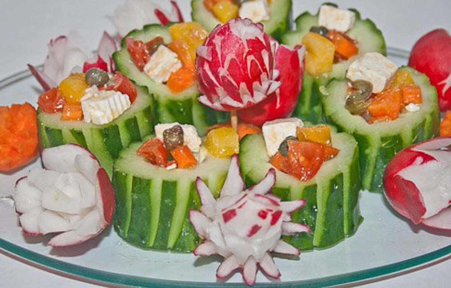 Pelate i cetrioli lasciando alcune strisce di buccia.