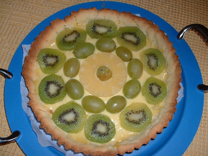 Ho preparato la crema pasticcera. E una volta fredda lo versata sulla crostata ed infine ho decorato con la frutta.