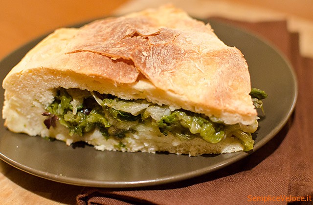 Preparate la pasta con la farina, le patate lessate e passate, il sale ed il lievito, aggiungendo un po' di acqua tiepida se necessario. Lasciatela lievitare per 30/40 minuti. Nel frattempo pulite e lavate le scarole, scottatele in acqua bollente salata e strizzatele delicatamente. In un tegame con ½ bicchiere d'olio fate imbiondire l'aglio, poi eliminatelo e aggiungete le scarole, le olive nere, i pinoli, l'uva passa, le acciughe, una spolverata di pepe. In una teglia unta stendete uno strato di pasta, quindi distribuite il ripieno e coprite con un secondo strato. Infornate a fuoco moderato per 40 minuti.