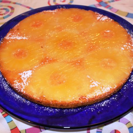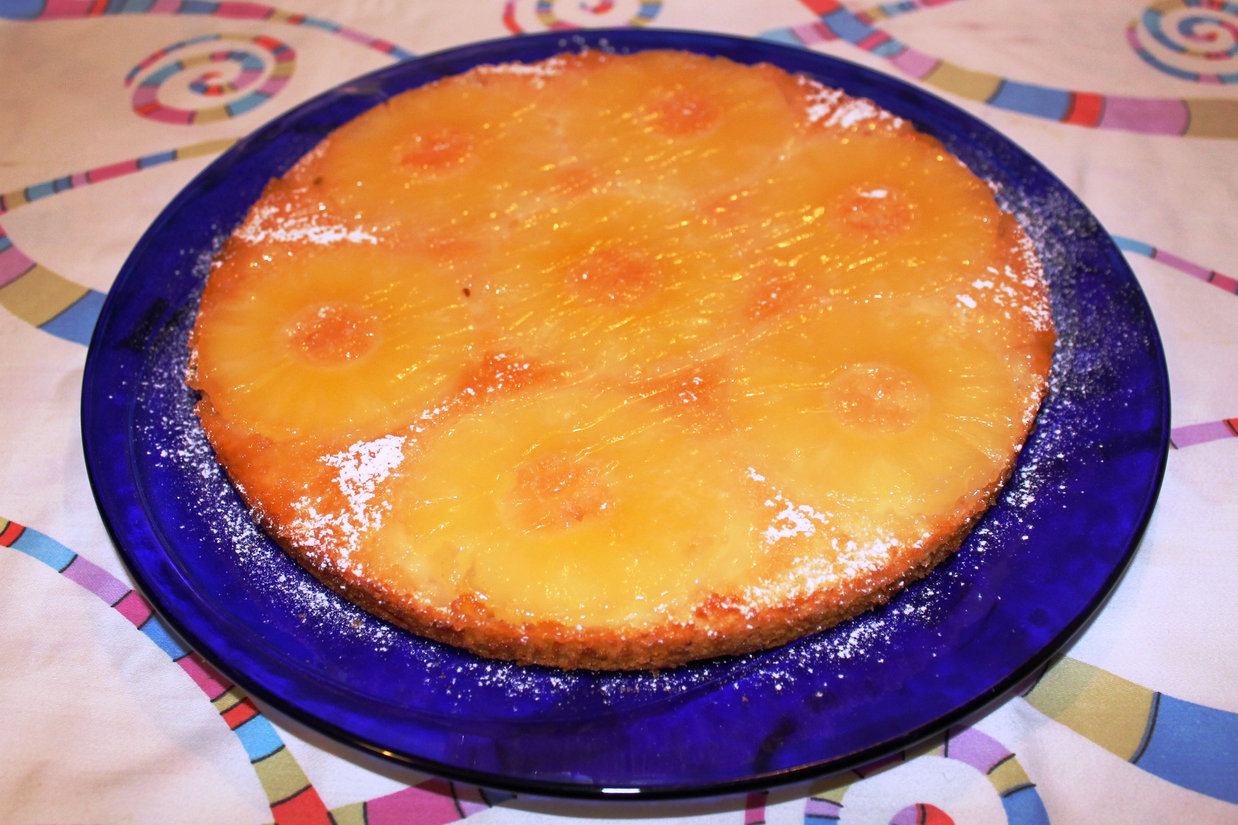 Sciogliere 2 cucchiai di zucchero in un pò di sciroppo d'ananas e versare sul fondo di una tortiera a cerniera imburrato e infarinato. Disporvi sopra le fette di ananas.
