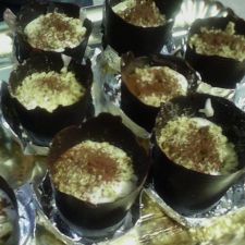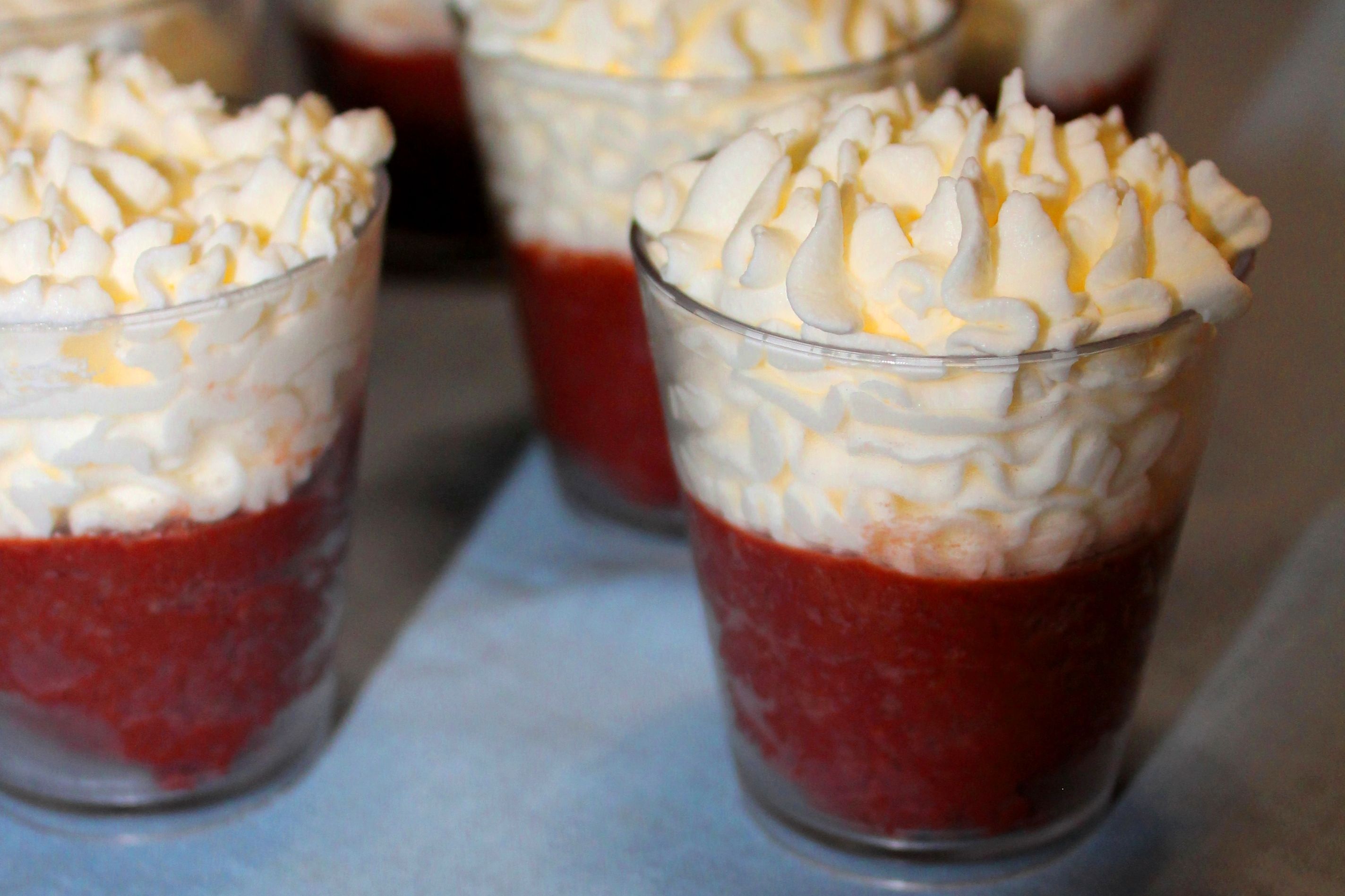 Preparare i bicchierini disponendo il composto di castagne sul fondo e la panna montata sopra. Si possono ripetere anche più strati.