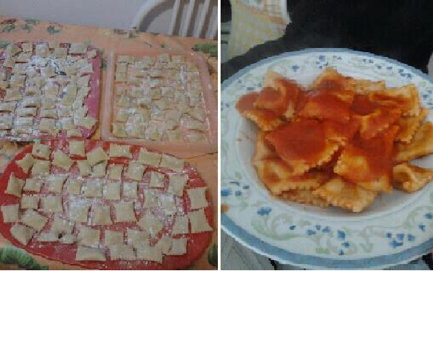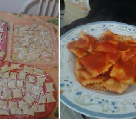 impastare la farina e le uova fino ad ottenere un panetto liscio e morbido. Stendere la pasta con il mattarello e con una forma concentrica fare dei cerchi e al centro mettere il prosciutto crudo e chiudere i cerchi.Farli seccare in frigo per almeno 4 ore. Cuocere in acqua bollente con un pizzico di sale fin quando non saliranno a galla.