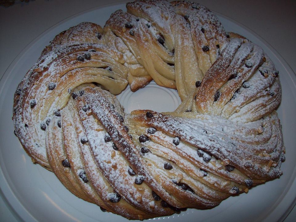 Preparare l'impasto, sbattendo con una frusta a mano il latte con lo zucchero e poi i tuorli, unire il sale, la farina setacciata, il burro a cubetti e lavorare l'impasto per dieci minuti, finchè risulta bello elastico. Aggiungere il lievitino ed amalgamare il tutto, formare di nuovo una palla, lasciando lievitare due ore.