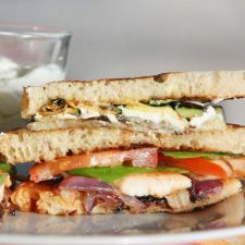 Far tostare il pane da toast e il bacon in forno, spalmare nel primo strato maionese con le cipolline tritate, pomodoro affettato, lattuga e una fetta di tacchino, secondo strato di nuovo maionese con cipolline , pomodoro ,lattuga e tacchino, terzo strato spalmare il ketchup e aggiungere bacon e uovo sodo tagliato a fettine. Chiudere con l’ultima fetta di pane e mettere nella carta trasparente schiacciando un po’ in modo da far attaccare bene i sandwich. Riporre in frigo e servire.