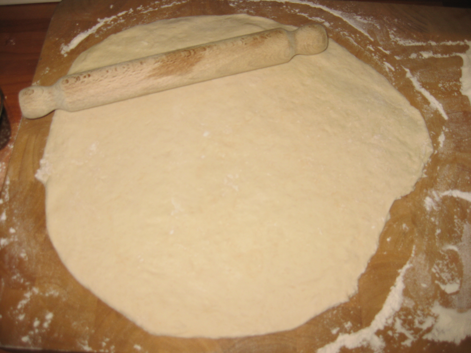 Spiana con il mattarello per ottenere dei dischi sottili e disponili nelle teglie leggermente unte d’olio.